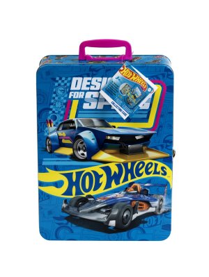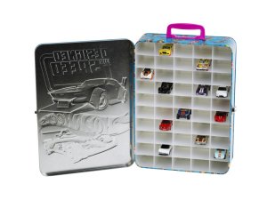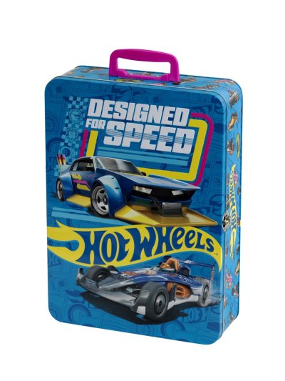 Zberateľský plechový kufrík s rukoväťou, do ktorého sa zmestí 50 kusov autíčok Hot Wheels!