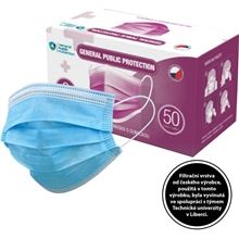 • Jednorazové zdravotnícke tvárové masky alebo rúšky vyrobené z 3 vrstiev netkanej textílie opatrené elastickou gumičkou na upevnenie za uši a tesniacim nosným pásikom kopírujúcim tvar nos