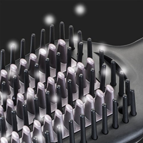 Žehliaca kefa vyhladí vlasy už za 3 minúty a dodá účesu žiarivý lesk. Kombinácia nylonových a keramických zahrievacích štetín zaisťuje rovnomerné rozloženie tepla a ľahké kĺzanie po vlasoch bez ťahania. Ionizačná technológia vlasy hydratuje, chráni pred statickou elektrinou a zabraňuje krepateniu počas celého dňa. Vďaka širokej ploche a 109 štetinám je vhodný aj pre husté alebo vlnité vlasy. Nastaviteľná teplota až do 200 °C, LED kontrolky a otočný kábel zaisťujú pohodlné a bezpečné používanie.