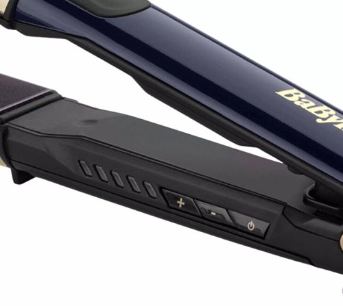 Dokonalé uhladenie a oslnivý lesk pre vaše vlasy. Žehlička ponúka maximálnu teplotu až 235 ° C, vďaka ktorej ľahko narovná aj tie najnepoddajnejšie pramene. Pokročilá technológia ohrevu Advanced Ceramics zaisťuje rovnomerné a konštantné rozloženie tepla po celej ploche doštičiek. 120 mm dlhé doštičky umožňujú rýchlejšiu a efektívnejšiu úpravu vlasov. Luxusný dizajn v kombinácii čiernej, tmavo modrej a zlatej farby dopĺňajú keramické doštičky s časticami čierneho onyxu pre maximálnu hladkosť.