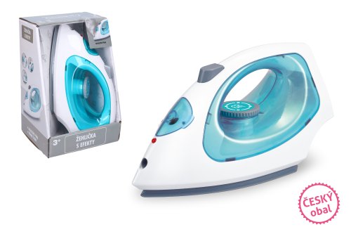 Žehlička s efektmi. Veľkosť 22 cm. Svetelné a zvukové efekty. 3xAA batérie nie sú súčasťou. Je možné naplniť vodou, upúšťa paru po stlačení tlačidla.