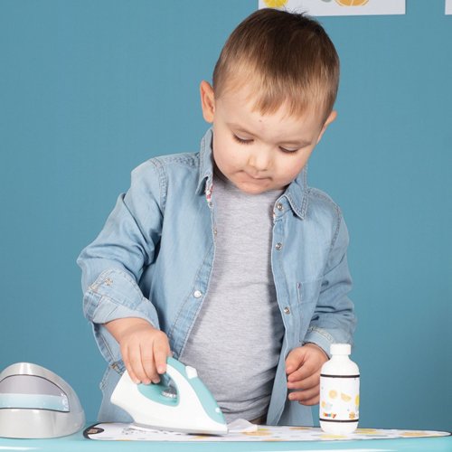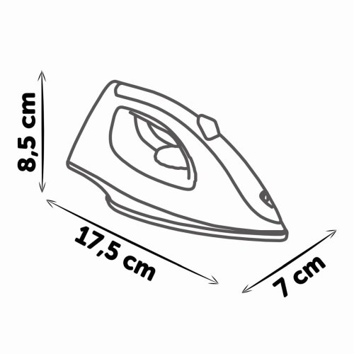 Realistická Smoby žehlička s mechanickým gombíkom so zvukom "kick-crack". Rozmery produktu (DxŠxV): 17,7 x 7,4 x 8,8 cm.