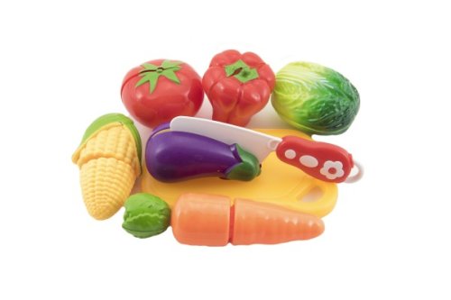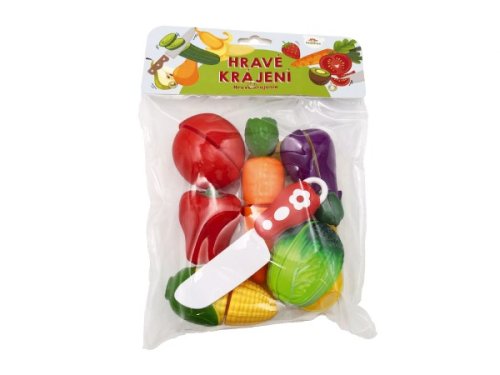 Krájacia zelenina je vhodná pre dievčatká, ktoré sa rady hrajú na kuchárky alebo na predavačky Jednotlivé dieliky zeleniny sú spojené suchým zipsom a je možné ich jednoducho "krájať" priloženým nožíkom.
