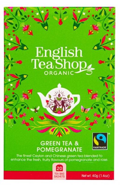 Zelený čaj s granátovým jablkem v bio kvalitě od značky English Tea Shop vás překvapí lehkou, ovocnou a čistou chutí. Díky obsahu teinu Vám čaj dodá energii a povzbudí tělo i mysl.