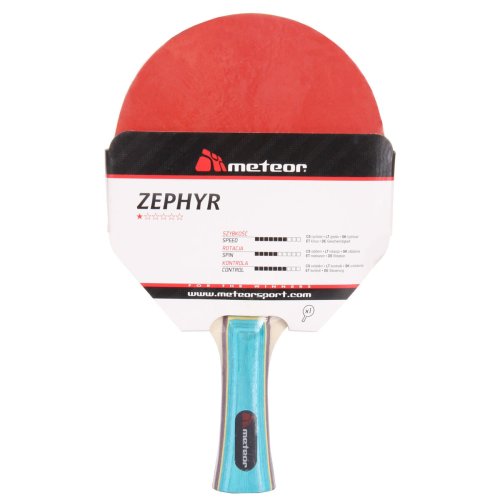 Raketa na stolný tenis Meteor Zephyr* je určená pre začínajúcich hráčov, hobby hráčov a všeobecne všetkých ľudí, ktorí chcú tráviť ich voľný čas aktívne. Ping pongové rakety Zephyr* sú nástupcom populárneho modelu Shang*. Rakety sú vyrobené z kvalitných materiálov – dreva, PU peny a gumy – ktoré zaručujú dobrú odolnosť a dlhú životnosť. Rakety boli vyrobené pomocou najmodernejších technológií, vďaka ktorým tak budú spĺňať aj požiadavky náročnejších hráčov. Optimálna rýchlosť je dosiahnutá použitím elastickej gumy pre vynikajúcu kontrolu a trakciu. Drevená rukoväť zaručuje veľmi dobrý grip, vďaka čomu je raketa vhodná pre útočný štýl hry.