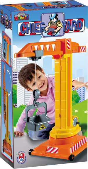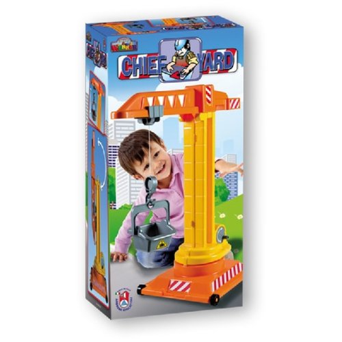 Obrí žeriav na pojazdnej plošine s pohyblivým zberným košom a ručným pohonom na kľučku z radu Giant Truck v hnedej ekologickej krabici. Vyrobené z kvalitných plastov v Taliansku. Rozmery balenia: 25 x 52,5 x 216 cm (dx š xv). Váha: 1,3 kg. Odporúčaný vek od 36 mesiacov.