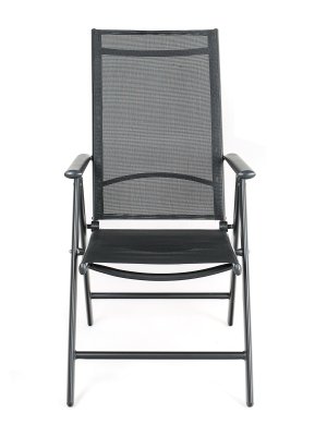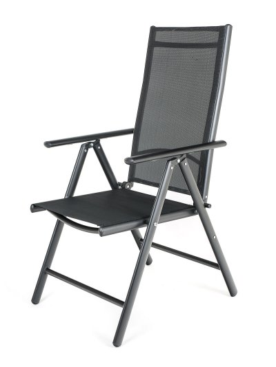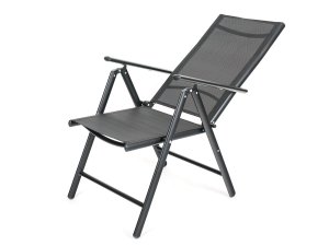 Ľahká skladacia a polohovacia stolička RAMADA má 7 polôh. S textilénom 2 x 1, oceľová konštrukcia, podrúčky, vzpery.
