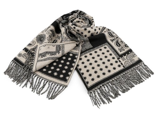 [Obojstranný vzorovaný šál] vás perfektne zahreje v sychravých dňoch. Je vyrobená z príjemne mäkkého a jemného materiálu. Na koncoch je zakončená dlhými strapcami. Upozorňujeme zákazníkov, že zloženie na štítkoch sa môže líšiť, materiál je [polyester a viskóza.]