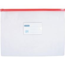 Vyrobené z odolného PVC s hrúbkou 170 mic Plastový zips Otváranie pozdĺž dlhšej hrany Pre uloženie drobného príslušenstva alebo dokumentov A4 Veľkosť: 33,0 x 24,0 cm Formát: A4 Farba: priehľadná