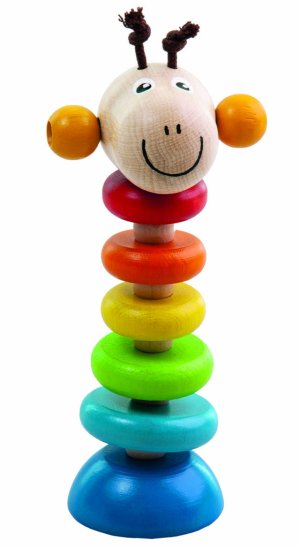Drevená hračka s motívom žirafy. Vhodná na precvičovanie motoriky rúk a je určená deťom už od 6tich mesiacov. Výrobok spĺňa požiadavky EÚ na bezpečnosť hračiek. Výška figúrky je 150 mm a je pripevnená na papierovej karte. Rozmery balenia 10,5 x 17,5 x 4 cm.