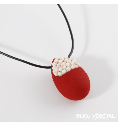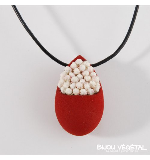 Živé šperky - Náhrdelník Slza červený s trvalými bielymi kvetmi Nádherný módny doplnok vo výraznej farbe v kombinácii s trvalými bielymi kvetmi vytvára neobyčajný elegantný živý šperk. Živé šperky sú stabilizované patentovanou technológiou a nepotrebujú prakticky žiadnu údržbu. Živé šperky sú balené v krabičke, súčasťou balenia je náhradná trvalá rastlina. Živé šperky sú vyrobené ručne vo Francúzsku. Výrobca garantuje neobmedzenú životnosť, pri vhodnom používaní. Živé šperky nesmú byť vystavené veľkým teplotným zmenám a priamemu prúdu vody (pri kúpaní, umývaní riadu a pod.) Živé šperky boli prvýkrát predstavené na medzinárodnom veľtrhu klenotov Bijorhca v Paríži roku 2015. Capucine. Živé šperky umožňujú stále prepojenie s prírodou a prinášajú ju doslova na dosah ruky. Francúzska značka Radis et Capucine