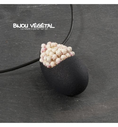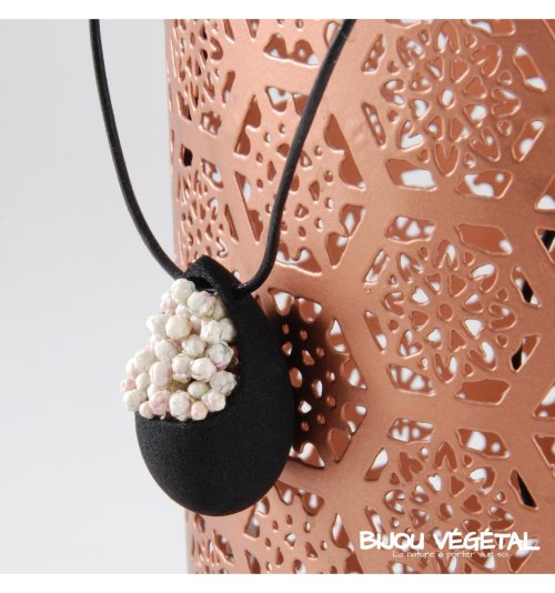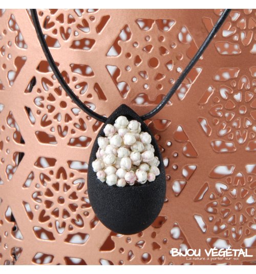 Živé šperky - Náhrdelník Slza čierny s trvalými bielymi kvetmi Nádherný módny doplnok vo výraznej farbe v kombinácii s trvalými bielymi kvetmi vytvára neobyčajný elegantný živý šperk. Živé šperky sú stabilizované patentovanou technológiou a nepotrebujú prakticky žiadnu údržbu. Živé šperky sú balené v krabičke, súčasťou balenia je náhradná trvalá rastlina. Živé šperky sú vyrobené ručne vo Francúzsku. Výrobca garantuje neobmedzenú životnosť, pri vhodnom používaní. Živé šperky nesmú byť vystavené veľkým teplotným zmenám a priamemu prúdu vody (pri kúpaní, umývaní riadu a pod.) Živé šperky boli prvýkrát predstavené na medzinárodnom veľtrhu klenotov Bijorhca v Paríži roku 2015. Capucine. Živé šperky umožňujú stále prepojenie s prírodou a prinášajú ju doslova na dosah ruky. Francúzska značka Radis et Capucine