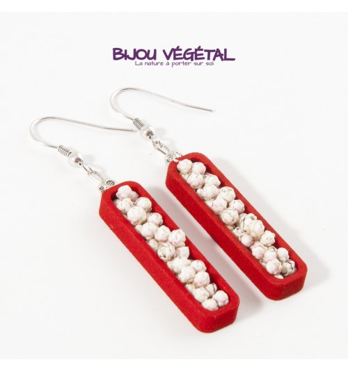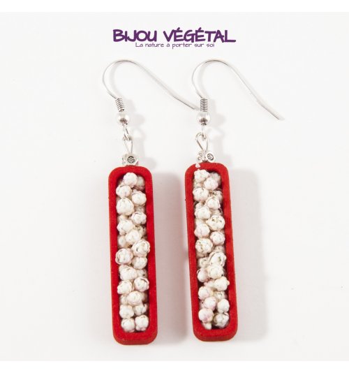 Živé šperky - Náušnice Jardiniere červené s trvalými bielymi kvetmi Nádherný módny doplnok vo výraznej farbe v kombinácii s trvalými bielymi kvetmi vytvára neobyčajný elegantný živý šperk. Živé šperky sú stabilizované patentovanou technológiou a nepotrebujú prakticky žiadnu údržbu. Živé šperky sú balené v krabičke, súčasťou balenia je náhradná trvalá rastlina. Živé šperky sú vyrobené ručne vo Francúzsku. Výrobca garantuje neobmedzenú životnosť, pri vhodnom používaní. Živé šperky nesmú byť vystavené veľkým teplotným zmenám a priamemu prúdu vody (pri kúpaní, umývaní riadu a pod.) Živé šperky boli prvýkrát predstavené na medzinárodnom veľtrhu klenotov Bijorhca v Paríži roku 2015. Capucine. Živé šperky umožňujú stále prepojenie s prírodou a prinášajú ju doslova na dosah ruky. Francúzska značka Radis et Capucine