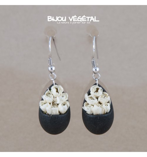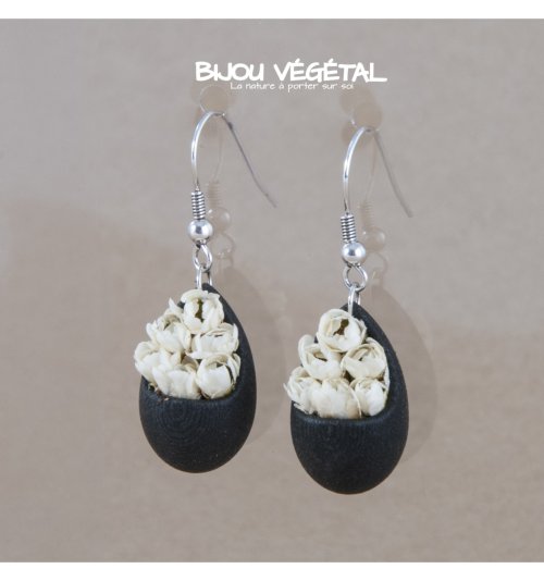Živé šperky - Náušnice Slza čierne s bielymi minirůžičkami Nádherný módny doplnok vo výraznej čiernej farbe v kombinácii s bielymi minirůžičkami vytvára neobyčajný elegantný živý šperk. Živé šperky sú stabilizované patentovanou technológiou a nepotrebujú prakticky žiadnu údržbu. Živé šperky potrebujú jednorazovú zálievku raz týždenne. Súčasťou balenia je pipetka na jednorazovú zálievku, ochranná krabička na živé šperky. Živé šperky sú vyrobené ručne vo Francúzsku. Výrobca garantuje neobmedzenú životnosť, pri vhodnom používaní. Živé šperky nesmú byť vystavené veľkým teplotným zmenám a priamemu prúdu vody (pri kúpaní, umývaní riadu a pod.) Živé šperky boli prvýkrát predstavené na medzinárodnom veľtrhu klenotov Bijorhca v Paríži roku 2015. Capucine. Živé šperky umožňujú stále prepojenie s prírodou a prinášajú ju doslova na dosah ruky. Francúzska značka Radis et Capucine