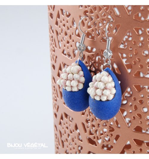 Živé šperky - Náušnice Slza modré s trvalými bielymi kvetmi Nádherný módny doplnok vo výraznej farbe v kombinácii s trvalými bielymi kvetmi vytvára neobyčajný elegantný živý šperk. Živé šperky sú stabilizované patentovanou technológiou a nepotrebujú prakticky žiadnu údržbu. Živé šperky sú balené v krabičke, súčasťou balenia je náhradná trvalá rastlina. Živé šperky sú vyrobené ručne vo Francúzsku. Výrobca garantuje neobmedzenú životnosť, pri vhodnom používaní. Živé šperky nesmú byť vystavené veľkým teplotným zmenám a priamemu prúdu vody (pri kúpaní, umývaní riadu a pod.) Živé šperky boli prvýkrát predstavené na medzinárodnom veľtrhu klenotov Bijorhca v Paríži roku 2015. Capucine. Živé šperky umožňujú stále prepojenie s prírodou a prinášajú ju doslova na dosah ruky. Francúzska značka Radis et Capucine