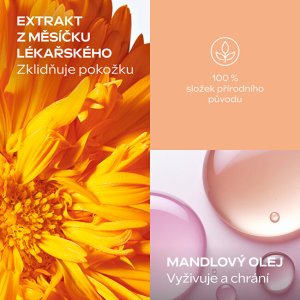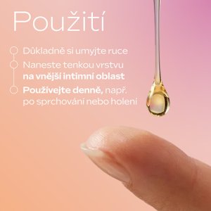 Zklidňující olejová péče pro ženy, které v intimní oblasti zažívají podráždění, svědění, pálení nebo pocit suchosti – ať už po holení, v období hormonálních změn nebo při dlouhodobém diskomfortu. Lehká textura se rychle vstřebává, nezanechává mastný film a vytváří na pokožce jemný ochranný film, který podporuje přirozenou regeneraci. Receptura kombinuje výživné rostlinné oleje, jako je mandlový, meruňkový, jojobový, kokosový a arganový olej, s výtažky z měsíčku a heřmánku. Tyto složky společně zklidňují pokožku, pomáhají zmírnit zarudnutí a přispívají k obnovení ochranné bariéry. Přípravek respektuje intimní mikrobiom a je vhodný i v těhotenství a při kojení. 85 % žen potvrzuje okamžitý zklidňující účinek* * aplikační studie, 40 žen, jedna aplikace