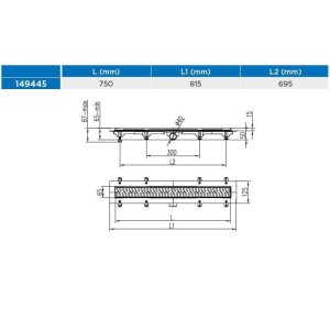 Žľab podlahový lineárny 750 mm, D 40 mm, bočné, klasik / floor mat, ENPRO