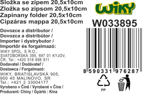 Zložka so zipsom o veľkosti 20,5x10 cm. Mix farieb