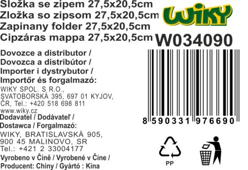 Zložka so zipsom 27,5x20,5 cm 4 farebné prevedenie (modrá, čierna, svetlo modrá, oranžová)