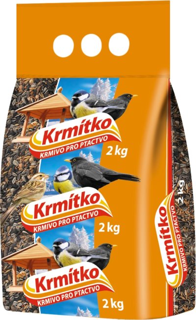 Zmes KRMÍTKO na prikrmovanie vonkajšieho vtáctva predovšetkým v zimnom období. Skladá sa zo slnečnice čiernej a žíhanej, repky ozimnej, pšenice, ovsa a ľanového semienka. Balenie: 2 kg.
