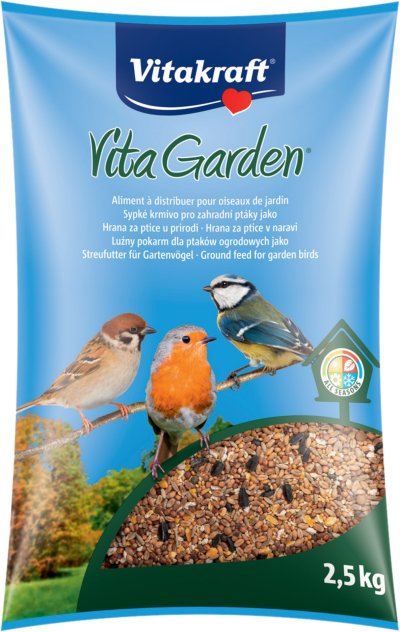 Kompletné krmivo pre záhradné vtáctvo. Krmivo Vita Garden obsahuje lahodná semená, obilné zrná, slnečnicové semienka a vitamíny. Je cenným doplnkom stravy voľne žijúcich záhradných vtákov. Vynikajúci celoročné krmivo pre mnoho vtáčích druhov. Perfektné do kŕmidiel alebo na rozsypanie po zemi. Receptúra bez cukru. Neobsahuje umelé farbivá ani konzervačné látky.