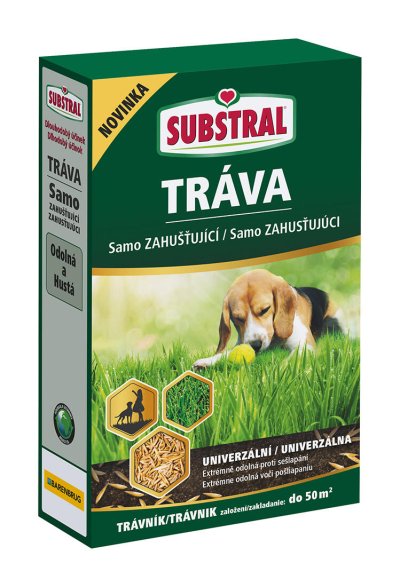 SAMOZAHUŠŤUJÚCE TRÁVY SUBSTRAL Trávna zmes obsahuje novo vyšľachtený druh jílku vytrvalého (Lolium Perenne RPR), ktorý má vysokú schopnosť regenerácie. Vďaka tejto vlastnosti získate odolný a hustý trávnik, ktorý pri správnej starostlivosti (hnojenie, prevzdušňovanie, zavlažovanie a pod.) bude veľmi pekný po mnoho rokov. Vysoká odolnosť proti záťaži a zošliapávaniu vďaka samozahusťujúcemu horizontálnemu nadzemnému pletivu tráv, ktoré vytvára hustý trávnik. Vďaka tomu trávnik zvláda vysokú záťaž a súčasne dekoratívne nároky. Ako to funguje? Voľné miesta v trávniku zapĺňa ílok vytrvalý horizontálnym rozrastaním sa od koreňov.