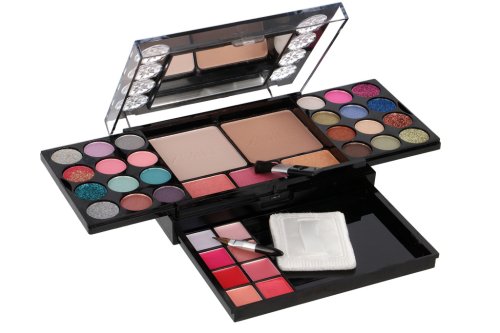 Kozmetická kazeta Diamond – obsahuje 16× očné tiene, 8× krémový lesk na pery, 8× krém s flitrami, 2× púder, 1× 3 aplikátor/štetec, integrované zrkadlo. Dermatologicky testované, vyhovuje prísnym normám EÚ.