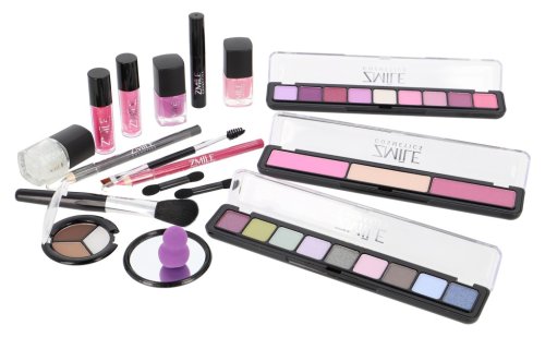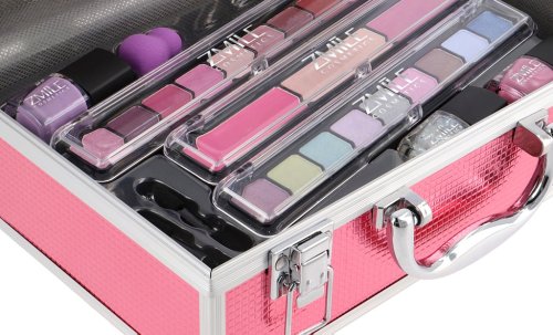 Kozmetický kufrík hliníkovými rámom Marry Berry s integrovaným zrkadlom - celkom 38 ks príslušenstva. Obsahuje 18× očnými tieňmi, 2× tvárenku, 1× zvýrazňovač, 1× vosk na obočie, 2× lesk na pery, 3× lak na nechty, 1× riasenka, 1× ceruzku na oči, 1× ceruzku na pery, 2× obojstranný aplikátor na tiene, 1× obojstranný aplikátor na obočie, 1× štetec na tvárenku, 1× okrúhle zrkadlo a 1× mini hubku na maku up. Dermatologicky testované, vyhovuje prísnym normám EÚ.