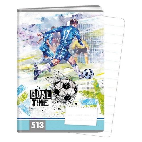 Zošit 513 GOAL TIME, veľkosť A5, 10 listov, nevyhnutná súčasť školských potrieb, vhodný pre žiakov 1. a 2. ročníka, široké riadky 12 mm.