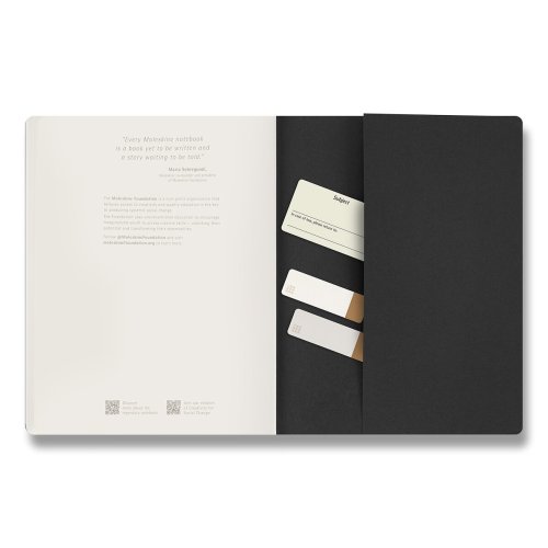 Gramáž papiera 70 g/m², neobsahuje kyseliny. Papier má slonovinovú farbu a je vyrobený z FSC certifikovaného dreva., rozmer: 21,59 x 27,94 cm, 60 listov, čistý., veľkosti notesov:, * XS - 6,5 x 10,5 cm (A7), * S - 9 x 14 cm (A6), * L - 1 25 cm (B5), * XXL - 21,59 x 27,94 cm (A4)
