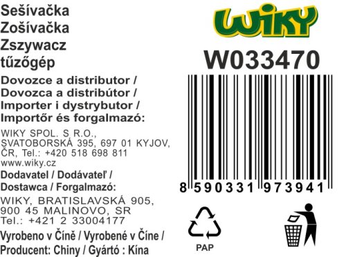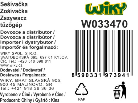 Zošívačka o rozmere 12,5x3,5 cm. 4 farebné varianty: modrá, šedá, biela, čierna.