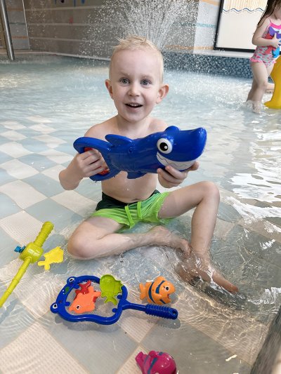 Prút, sieťka a hrôzostrašný žralok, ktorý pochytá všetky plastové rybičky. Vhodné do bazéna alebo vane.