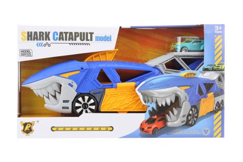 Súprava veľkého auta v motíve žraloka s vystreľovacími autíčkami. Balenie obsahuje veľké auto a 2 malé autíčka. Žralok funguje ako vystreľovacia dráha. K vystreleniu dôjde pomocou gumičiek umiestnených v zadnej časti. Materiál plast. Balené v krabici. Rozmery balenia cca 35,5x19,5x9 cm. Vek 3+