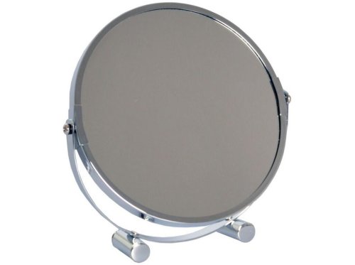 Kozmetické obojstranné zrkadlo so stojanom vhodné do kúpeľne alebo do spálne.