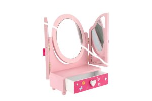 Každá malá parádnica chce mať svoju vlastnú šperkovnicu, kam by mohla schovať všetky svoje cennosti vrátane prstienkov, náramkov, korálikov a iných pokladov. Rozmer otvoreného zrkadla je cca 33 cm. Šperkovnica je vyrobená z kvalitného dreva av krásnej dievčenskej ružovej farbe. Rozmery balenia 18 x 26 x 10 cm. Vhodné pre deti od 3 rokov.