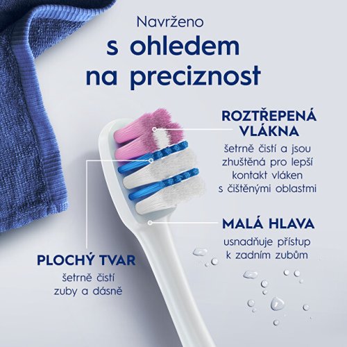 Zažite naozaj šetrné čistenie s manuálnou zubnou kefkou Pro-Sensitive Advanced s extra mäkkými vláknami, ktoré odstraňujú baktérie spôsobujúce plak dokonca aj pozdĺž línie ďasien. Táto kefka využíva vlákna s rozstrapkanými končekmi pre jemnejšie čistenie, jeho hlava má plochý tvar pre šetrné čistenie a jej malé rozmery umožňujú ľahký prístup do všetkých oblastí.