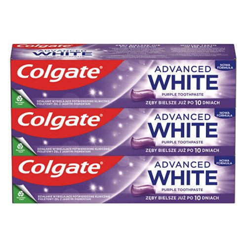 Rozjasnite svoj úsmev so zubnou pastou Colgate Advanced White Purple, ktorá obsahuje gél s fialovými pigmentmi a klinicky overený bieliaci systém. Odstraňuje povrchové škvrny a zabraňuje ich novému vzniku v budúcnosti. Vďaka tejto fialovej zubnej paste získate belšie zuby už za 10 dní. Tiež osviežuje dych, bojuje proti zubnému kazu a je bezpečná pre zubnú sklovinu pri každodennom použití.