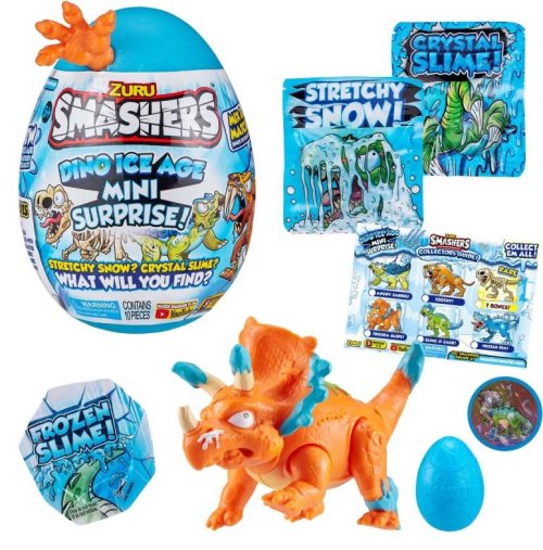Rozbite vajcia a zostavte svojho dinosaura! V tomto balení nájdete jedného zo 6tich dinosaurov, ale pozor! Najskôr budete musieť jeho časti dostať zo slizu alebo napríklad zmrznutej či pružnej hmoty. Hoďte svojim mini Smashers vajcom (Smash Egg) o zem a začnite budovať svoju zbierku Ice Age Smashers! K dispozícii je aj aplikácia v anglickom jazyku, ktorá vám zaručí ešte viac zábavy a prepojenia s dinosaurami cez Váš chytrý telefón. Obsah balenia: