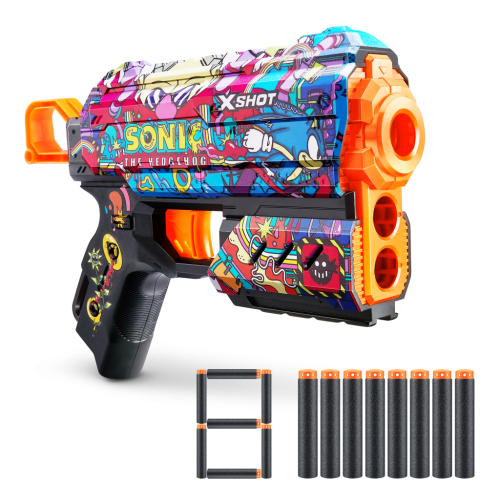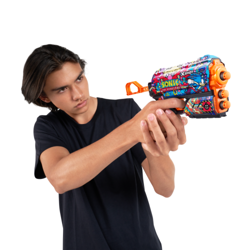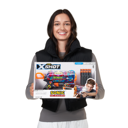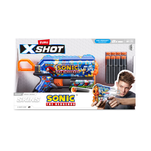Zbavte svoj blaster superzvukovou rýchlosťou ježka Sonica! Vyberte si vzhľad Sonica the Hedgehog a pripojte sa k bitke so Sonicom, Tailsom a Knucklesom. Vďaka kapacite jednej šípky a prednému úložnému priestoru pre 2 šípky, mechanizmus s jednoduchým nabíjaním znamená, že ste vždy pripravení na bitku. Flux môže zasiahnuť ciele až do vzdialenosti 27 m / 90 stôp a po každom výstrele sa vráti späť pre maximálny výkon. Šípky X-Shot Skins zahŕňajú technológiu Air Pocket pre rýchlejšiu, dlhšiu a presnejšiu streľbu. Vyberte si iný, zvoľte X-Shot Skins.