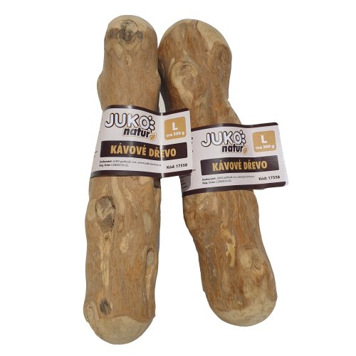 Hračku používajte iba pod dohľadom. Pokiaľ je už drevo také malé, že by ich pes mohol prehltnúť, nahraďte ho novým. Kávové drevo je prírodný materiál, preto je každý kus originál s rozdielnym tvarom aj hmotnosťou.