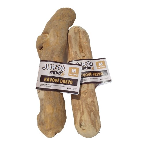 Hračku používajte iba pod dohľadom. Pokiaľ je už drevo také malé, že by ich pes mohol prehltnúť, nahraďte ho novým. Kávové drevo je prírodný materiál, preto je každý kus originál s rozdielnym tvarom aj hmotnosťou.