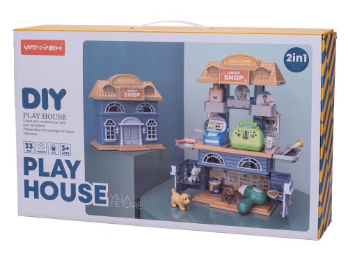 Zvierací domček/obchod 2 v1 s doplnkami 33 ks
