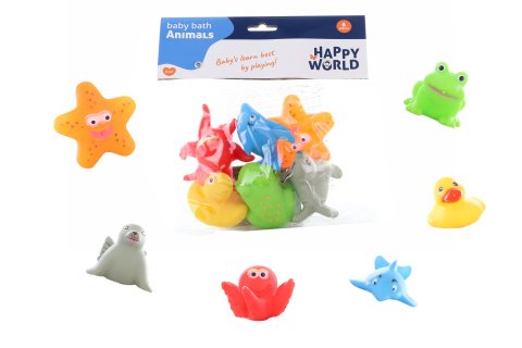 Súprava hračiek do vane. Súprava obsahuje 6 zvieratiek. Veľkosť jednej hračky cca 7 cm. Rozmery balenia cca 21x23 cm. Vek 6m+