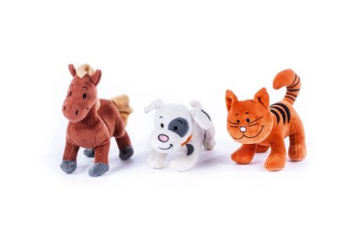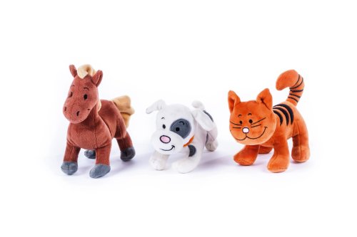 Roztomilé zvieratká, ktoré si deti priamo zamilujú, sú vyrobené z mäkkého, príjemného plyšu. Každé zvieratko po stlačení bruška vydáva charakteristický zvuk a deti si s nimi tak užijú veľa zábavy a naučia sa spoznávať, ako mňaučká mačička, ako šteká psík, alebo ako rehtá koník. Zvieratko obsahuje nevymeniteľné batérie 3 x LR44. Rozmer: 18-22 cm, 9 ks v boxe Vhodné pre všetky vekové kategórie.