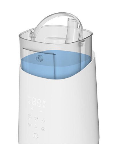 Multifunkčný 3 v 1 zvlhčovač vzduchu, ktorý kombinuje ultrazvukové zvlhčovanie, aromaterapiu a wellness osvetlenie pre zlepšenie kvality vzduchu a atmosféry vo vašej domácnosti. Vďaka integrovanému UV-C svetlu účinne redukuje baktérie vo vode, čím zaisťuje hygienickú prevádzku.