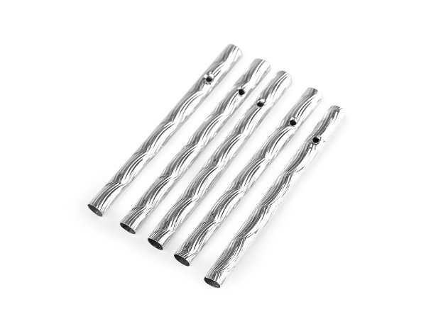 Duté kovové tyčinky využijete na výrobu zvonkohry alebo lapačov snov. Nádherne jemne zvonia, v hornej časti majú prievlak na zavesenie na povrázok. Ich povrch je špirálovito ozdobený vrúbkovaným reliéfom, keď ich vietor rozpohybuje, začnú sa pútavo blýskať. Variant mix obsahuje všetky dĺžky tyčiniek.