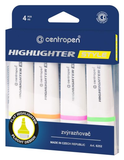 Plochý zvýrazňovač STYLE v atraktívnom prevedení Pre zvýraznenie textu na všetkých druhoch papiera vr. faxového Fluorescenčný pigmentový atrament Skosený hrot Šírka stopy: 1,0 - 4,6 mm