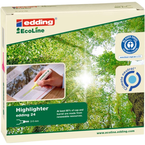 • Ekologické aspekty zvýrazňovača edding 24 boli ocenené eko certifikátom Blue Angel