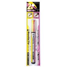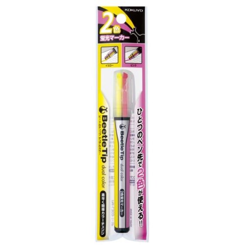 Zvýrazňovač KOKUYO so špeciálnym dvojitým hrotom - jeden popisovač s dvoma farbami v zdvojenom hrote Podľa držania popisovača zvýrazňovania žltým odtieňom, pootočným o 180 stupňov k dispozícii ružový odtieň.