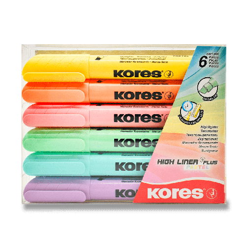 Zvýrazňovač Kores High Liner Pastel - sada 6 farieb